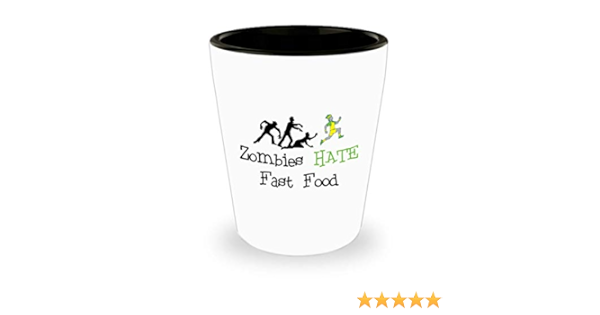 Amazon Com Zombie Shot Glass Zombies Hate Fast Food Hot Cool Best Gift For Zombie Lover Shot Glasses